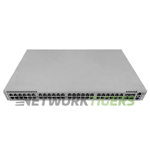 The Arista DCS-7010TX-48-F is a high-performance network switch with 48 RJ45 1G ports and four SFP28 ports supporting up to 25Gbps. It delivers a switching capacity of 296 Gbps, with a forwarding rate of 220 million packets per second (Mpps).