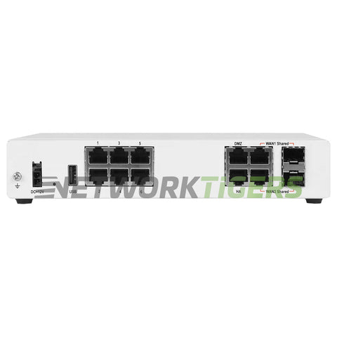 - Network Ports : 6x 1 Gigabit Ethernet RJ-45, 1x Bypass 1GB RJ-45 Port Pair (WAN1 and Port1, default configuration), 2x 1 Gigabit Ethernet RJ-45 FortiLink